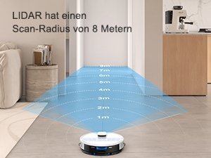 Radius von 8 Metern zur Optimierung der Abdeckung, Saugroboter mit Lasernavigation helfen bei der gründlichen Reinigung Ihres Hauses